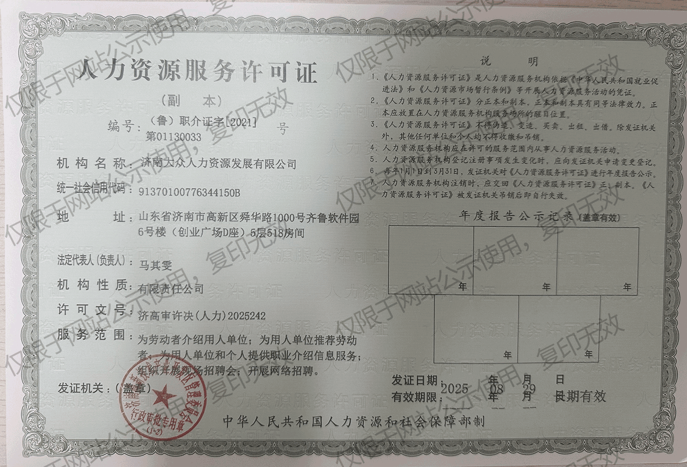 未經(jīng)www.jiajiajishi.com同意,不得轉(zhuǎn)載本網(wǎng)站的所有招聘信息及作品 濟南大眾人力資源發(fā)展有限公司版權(quán)所有 ?2005-2025